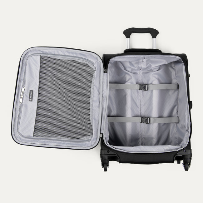 The world is at your feet with the Travelpro® Maxlite® 5 International Carry-on Expandable Spinner—a compact, ultra-lightweight carry-on designed to meet the size restrictions of most international airlines. Perfect for short to medium-length trips this must-have bag features a 2-position adjustable PowerScope Lite handle with comfortable Contour Grip and four Spinner wheels that provide an effortless 360° roll. Inside, the ECOFAB™ lining of this spinner is made from 100% post-consumer recycled plastic bottles, then treated with H2O guard for moisture resistance.