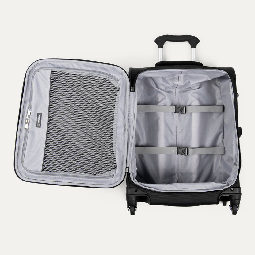 Two exterior compartments, full-length interior lid pocket, side accessory pocket and adjustable interior hold-down straps keep you organized, while the high-tensile-strength expandable zipper maximizes packing space up to two additional inches. Backed by our Travelpro® Built For A Lifetime Limited Warranty.