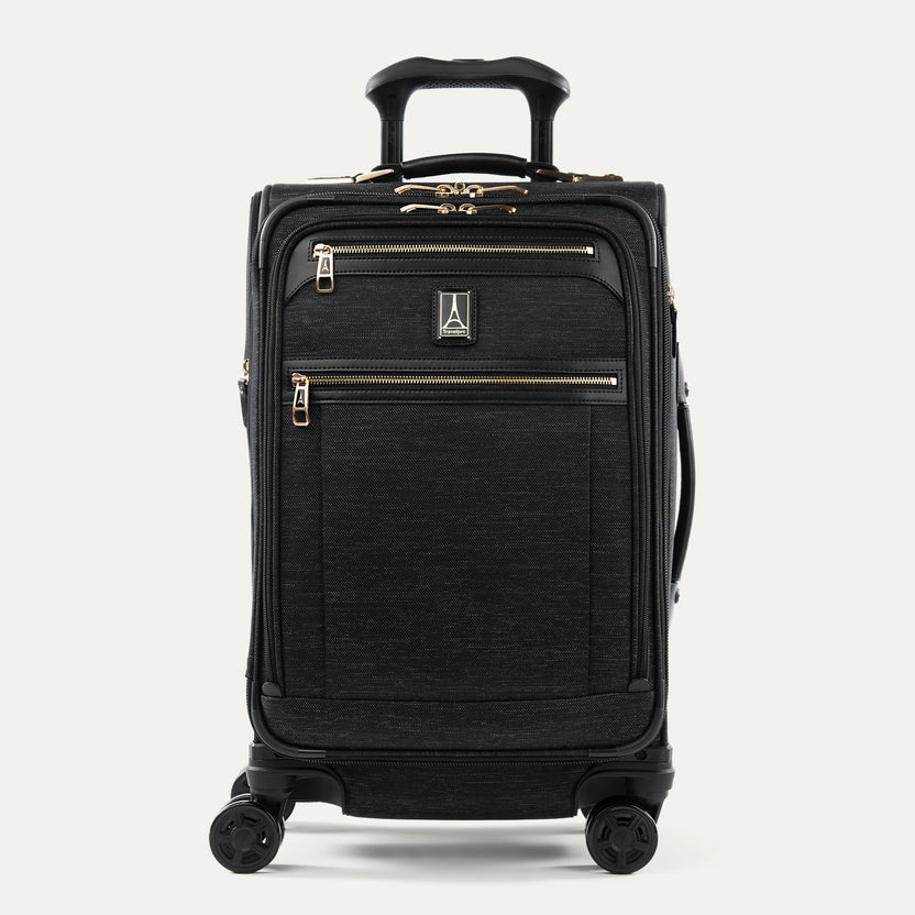 • Travelpro® Platinum® Elite lets you maximize your carry-on in sophisticated style, featuring premium fabrics, genuine leather, chrome zippers, and a tip-resistant expansion that offers up to 2” more packing capacity