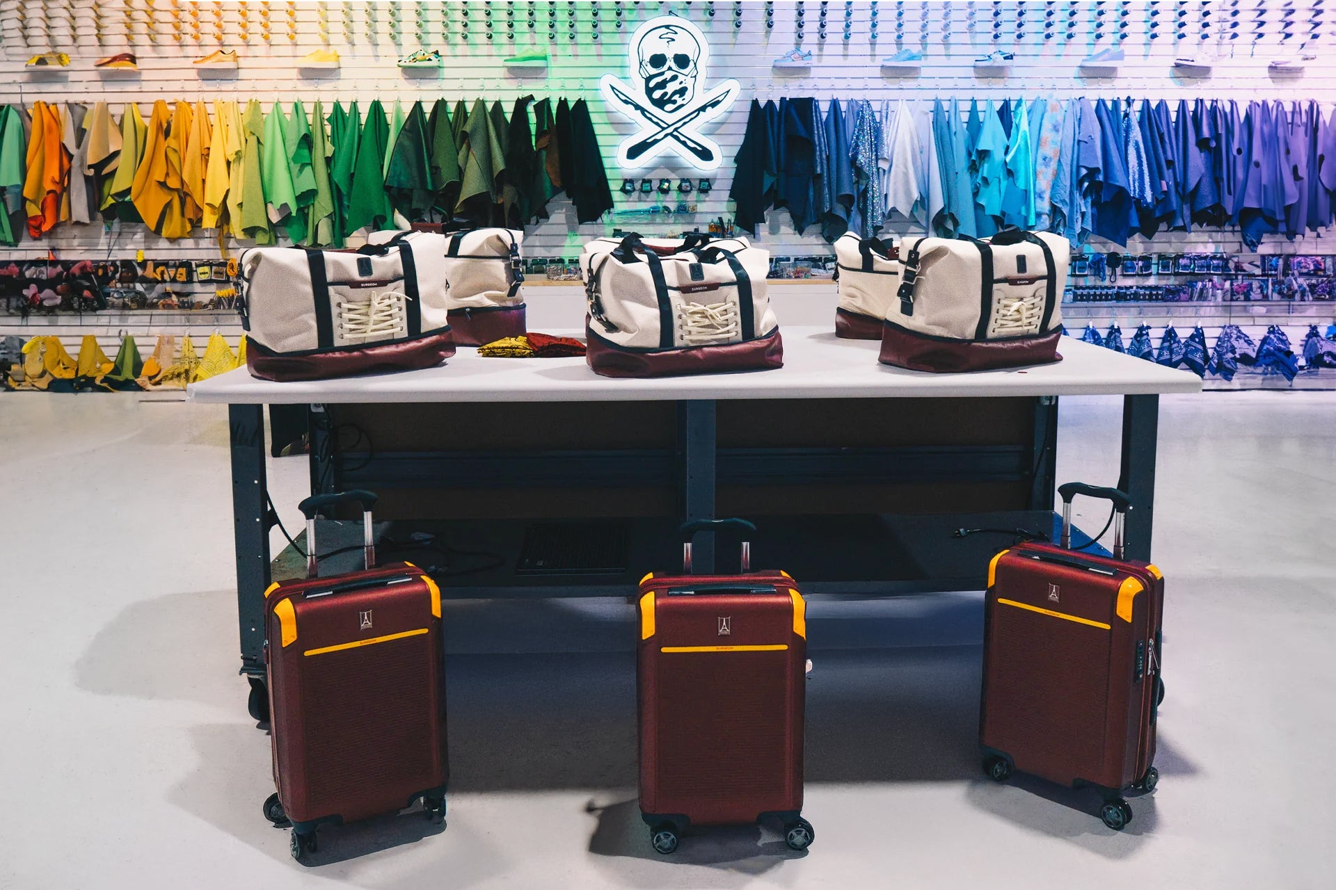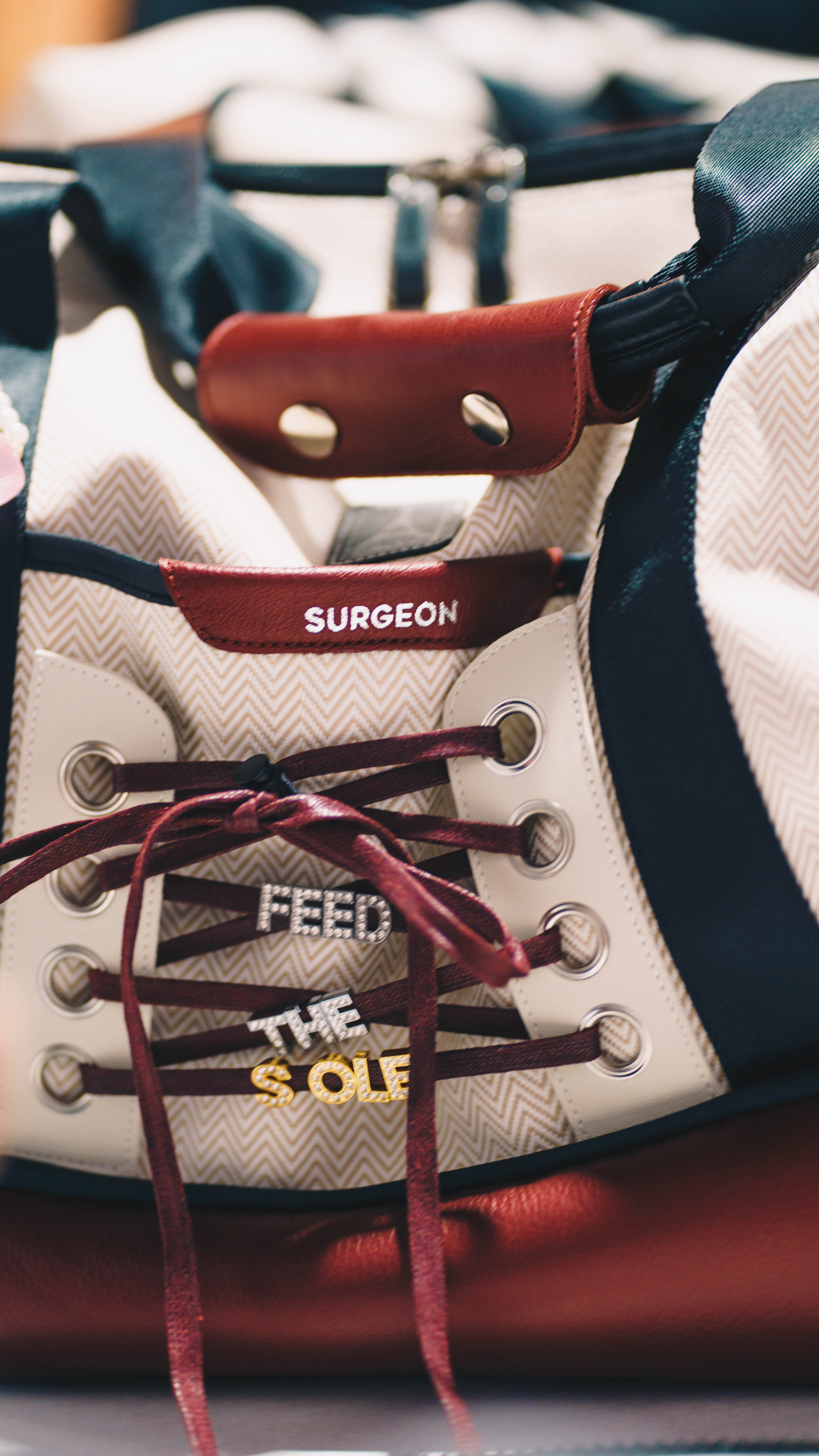 From meticulously hand-crafted Italian leather accents and gold powder-coated hardware to intricate shoelace-inspired detailing, each piece embodies the Surgeon's vision of travel as self-expression. The athletes took it a step further, infusing their personal style into every bag by selecting vibrant laces, custom leather tags, co-branded charms, and accessories that reflect their unique journeys.