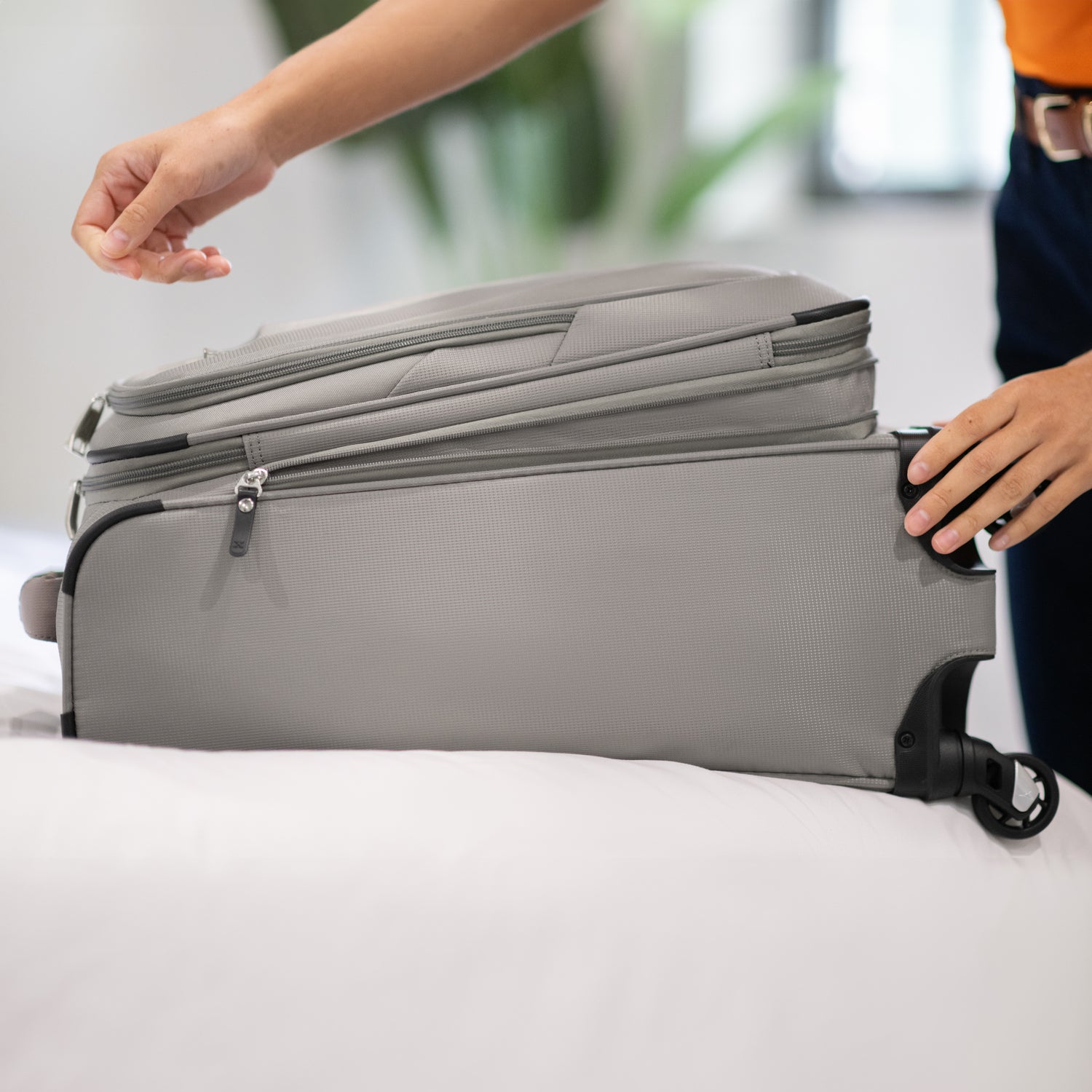 Tapered expansion design keeps the center of gravity low to help reduce tipping while providing up to 2” additional packing capacity.