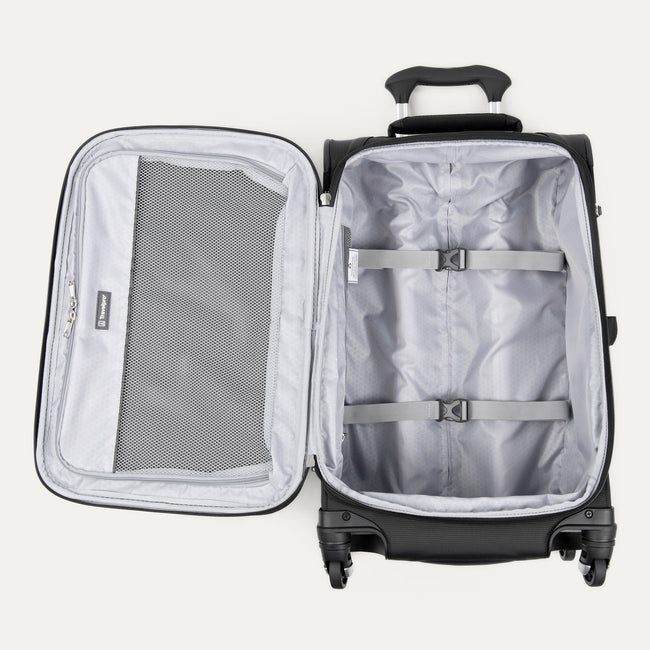 The Maxlite® 5 Carry-On Expandable Spinner is designed for ultimate comfort and mobility, featuring a 2-position adjustable PowerScope Lite handle with patented Contour Grip and 4-wheel 360° rotating spinners that glide effortlessly. Enjoy packing convenience with two quick-access, exterior front pockets, full-length interior lid pocket, side accessory pocket and adjustable hold-down straps, while the high-tensile-strength expandable zipper gives you maximum packing flexibility.