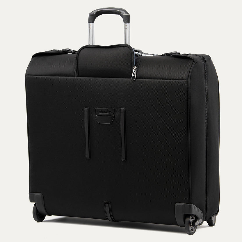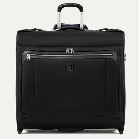 Go large and in charge. The Platinum® Elite Rolling Garment Bag accommodates several hanging garments with its larger interior and a padded roll bar to guard against wrinkles. Multiple interior pockets accommodate folded clothing, undergarments, accessories and more, while a large exterior pocket and smaller zippered pocket provide ample room for a computer, tablet or other onboard essentials.