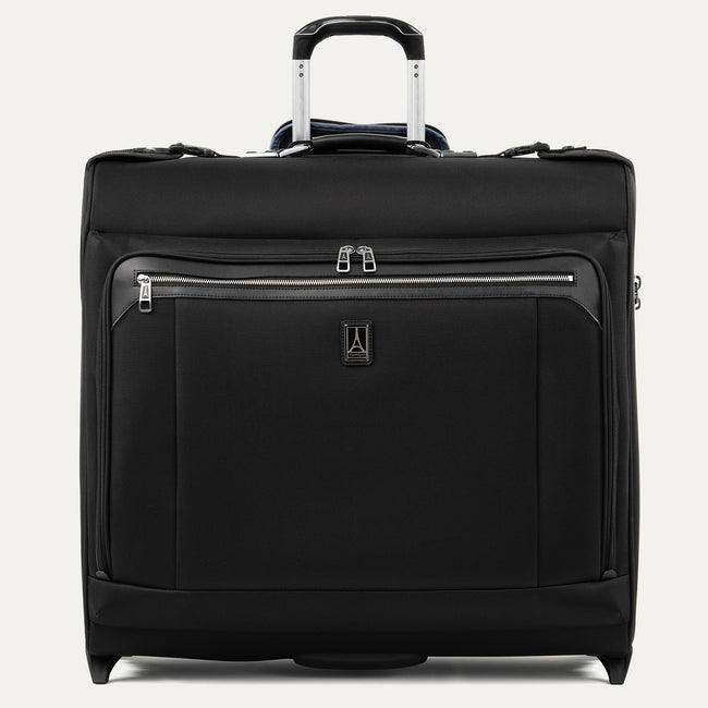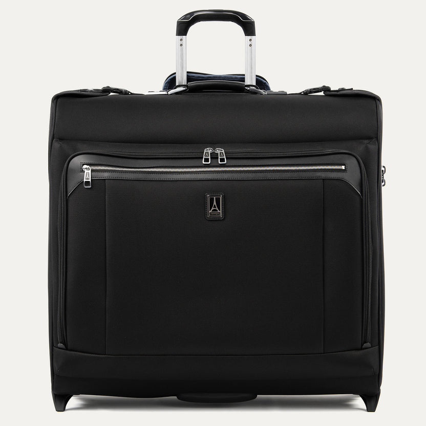Go large and in charge. The Platinum® Elite Rolling Garment Bag accommodates several hanging garments with its larger interior and a padded roll bar to guard against wrinkles. Multiple interior pockets accommodate folded clothing, undergarments, accessories and more, while a large exterior pocket and smaller zippered pocket provide ample room for a computer, tablet or other onboard essentials.