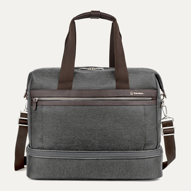 Designed for impressive adaptability with a removable bottom compartment, the Travelpro® Platinum® Elite Drop-Bottom Weekender makes an excellent gym bag, around-town commuter satchel, and an all-in-one travel carry-on.