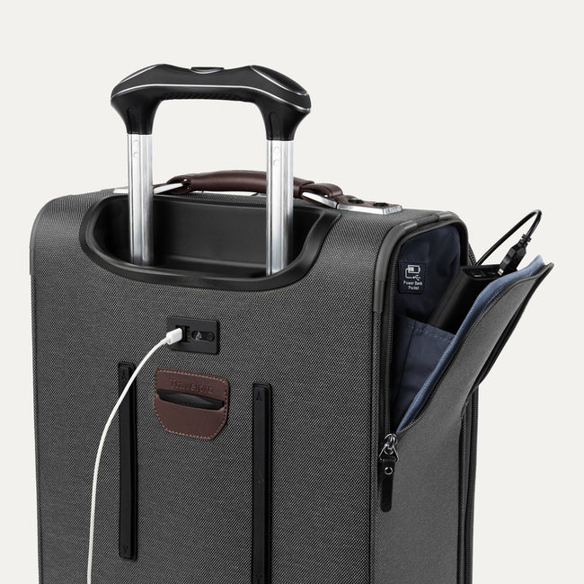 • Travelpro® QuickSlip® front pocket with magnetic closure is ideal for secure storage and easy access to a cell phone